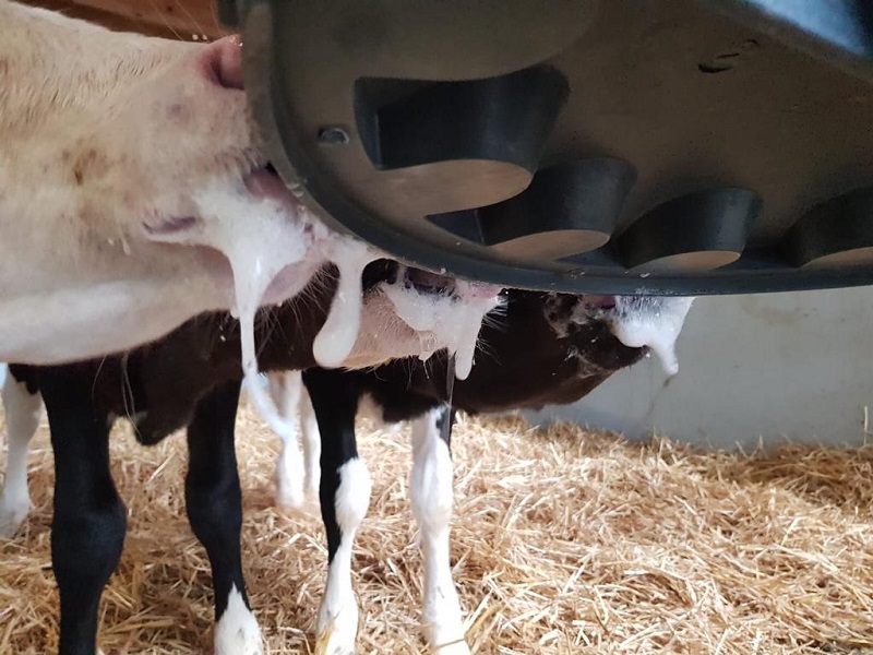 Feeding calves in their naturual posture prevent ruminant drinkers. The esophageal groove reflex works the best when calves have suck vigioursly. This way, the milk flows past the rumen into the abomasum. Suckling intensively for a long period with a slow milk flow has the advantage of promoting increased saliva production. This gives them more time to distribute the milk evenly.