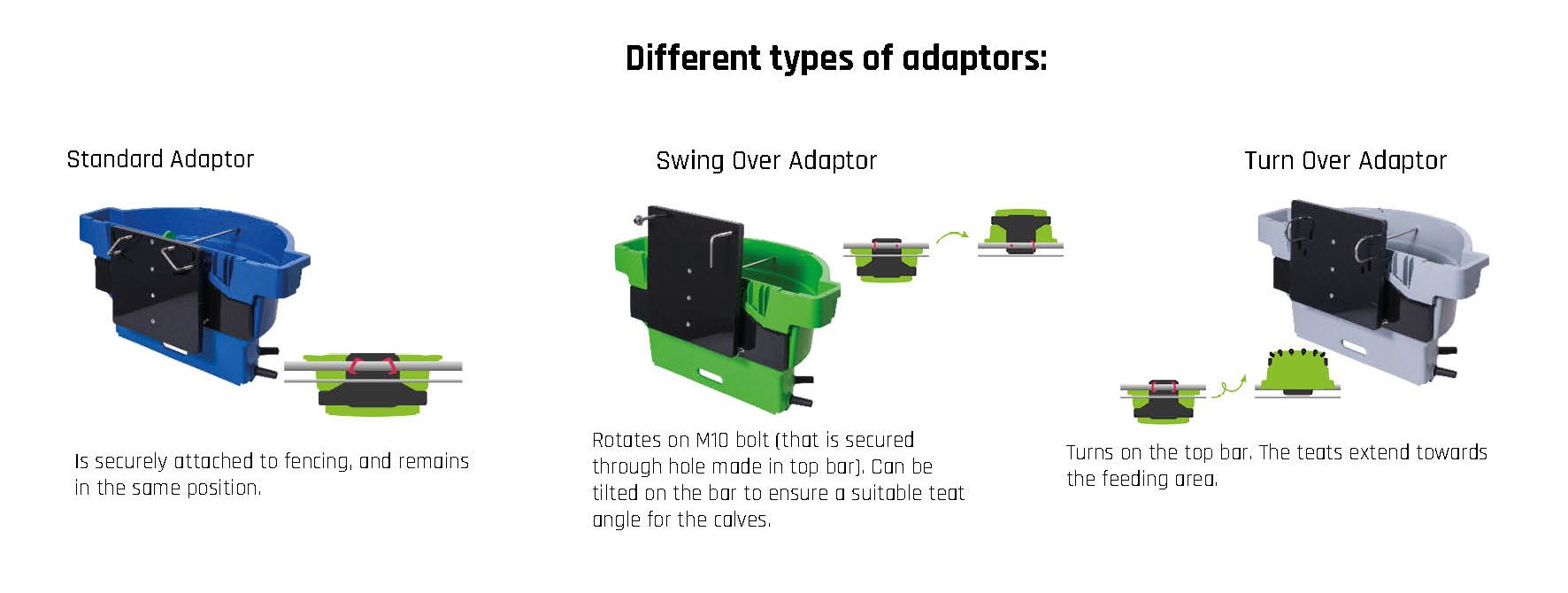 Please note: For a fixed feeding fence, we recommend purchasing a standard adaptor. A fixed feeding fence is not suitable for a rotating adaptor due to the M10 bolt that we need to install in the highest bar.
