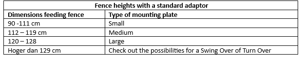 The Wennemars® ECF6 Feeder with a standard adaptor is our most common adaptor and fits almost all situations. This adaptor can also be used when attaching it to wood or concrete. The adaptor cannot be tilted and will always stay in the same position. It is highly suitable for feeding fences lower than 1 metre. The ECF6 feeder is available in different colours, which includes the lid.
