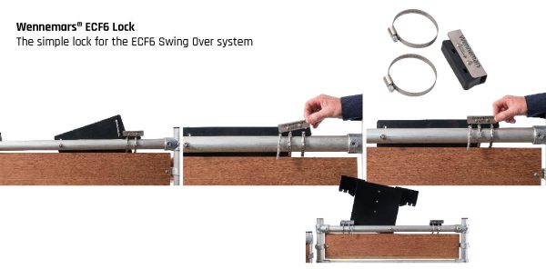 Always buy 2 ECF6 Locks if you want to lock the feeder when it is in the feeding position. Attach the ECF6 Lock to the fence on the opposite side of the adaptor to make this possible. Always attach it to the right side of the small hook.